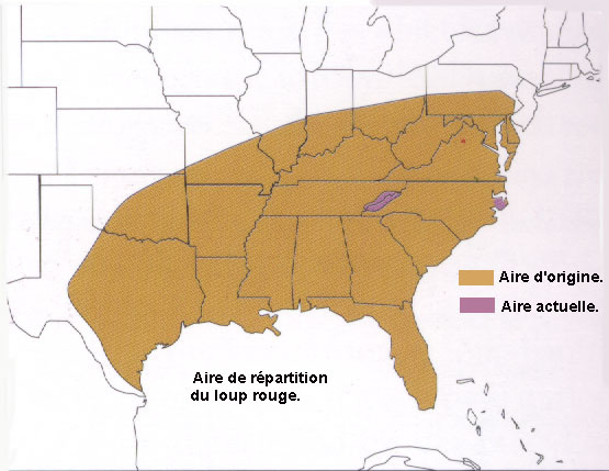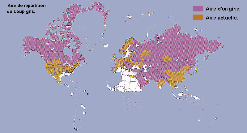 Les cartes présentées reflètent l'état actuel des connaissances concernant la répartition du Loup rouge (Canis Rufus) et du Loup gris (Canis Lupus) dans le monde. Certaines régions n'apparaissent pas en raison de données biologiques fiables manquantes.